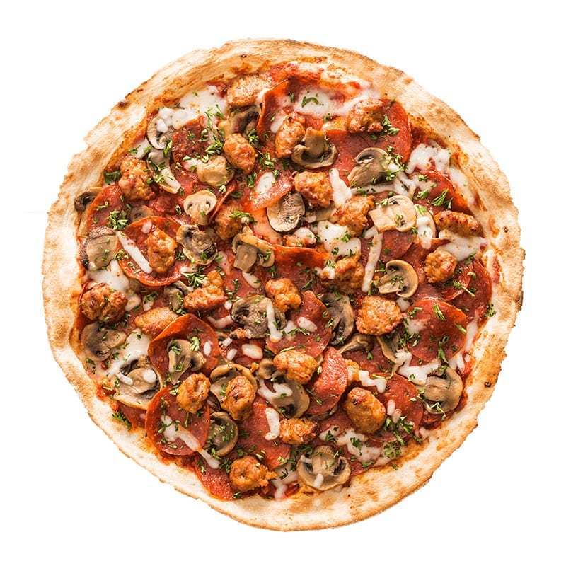 Freshly made in-house Tuscan Pizza. Rich flavours with rich taste.